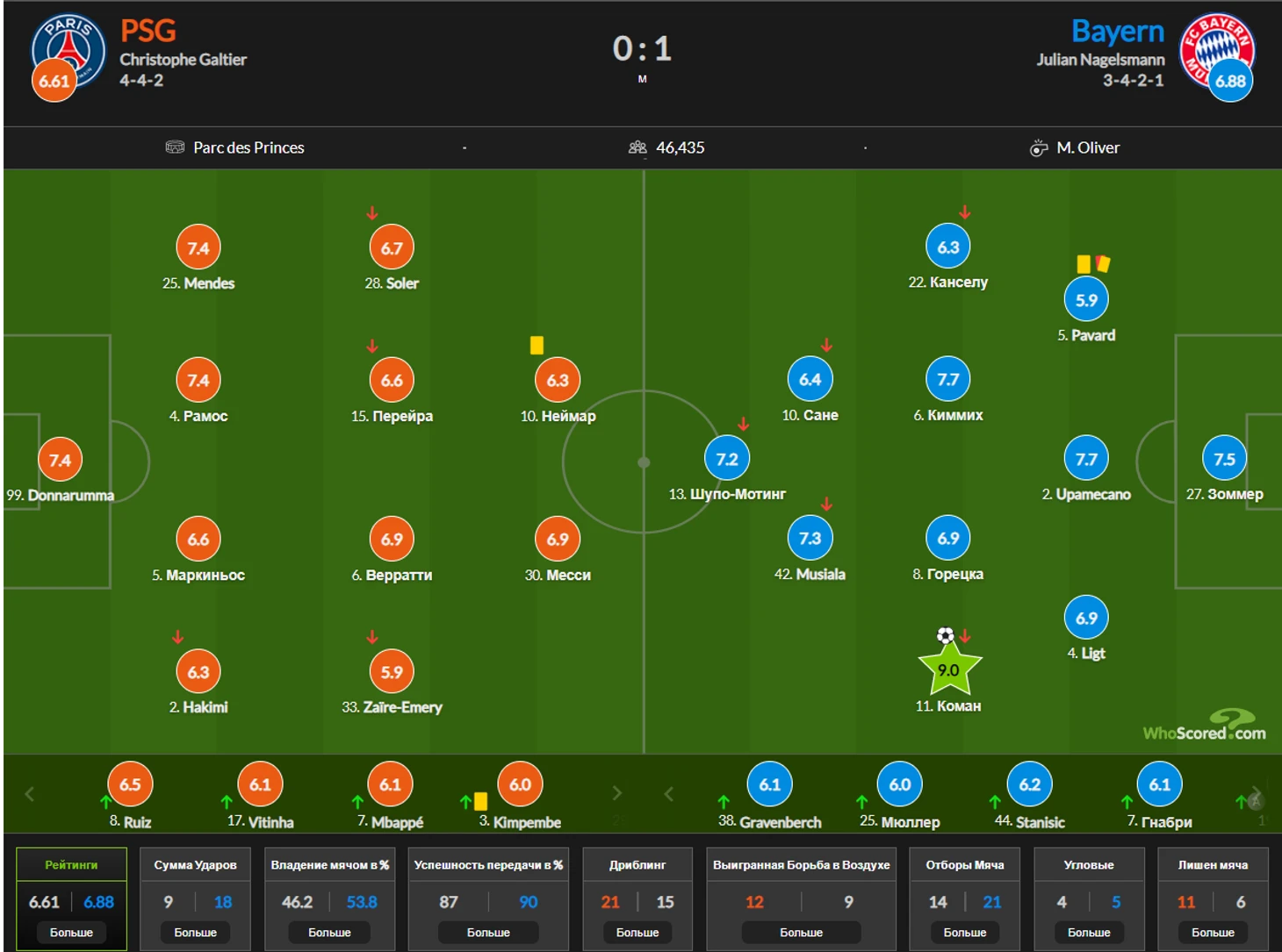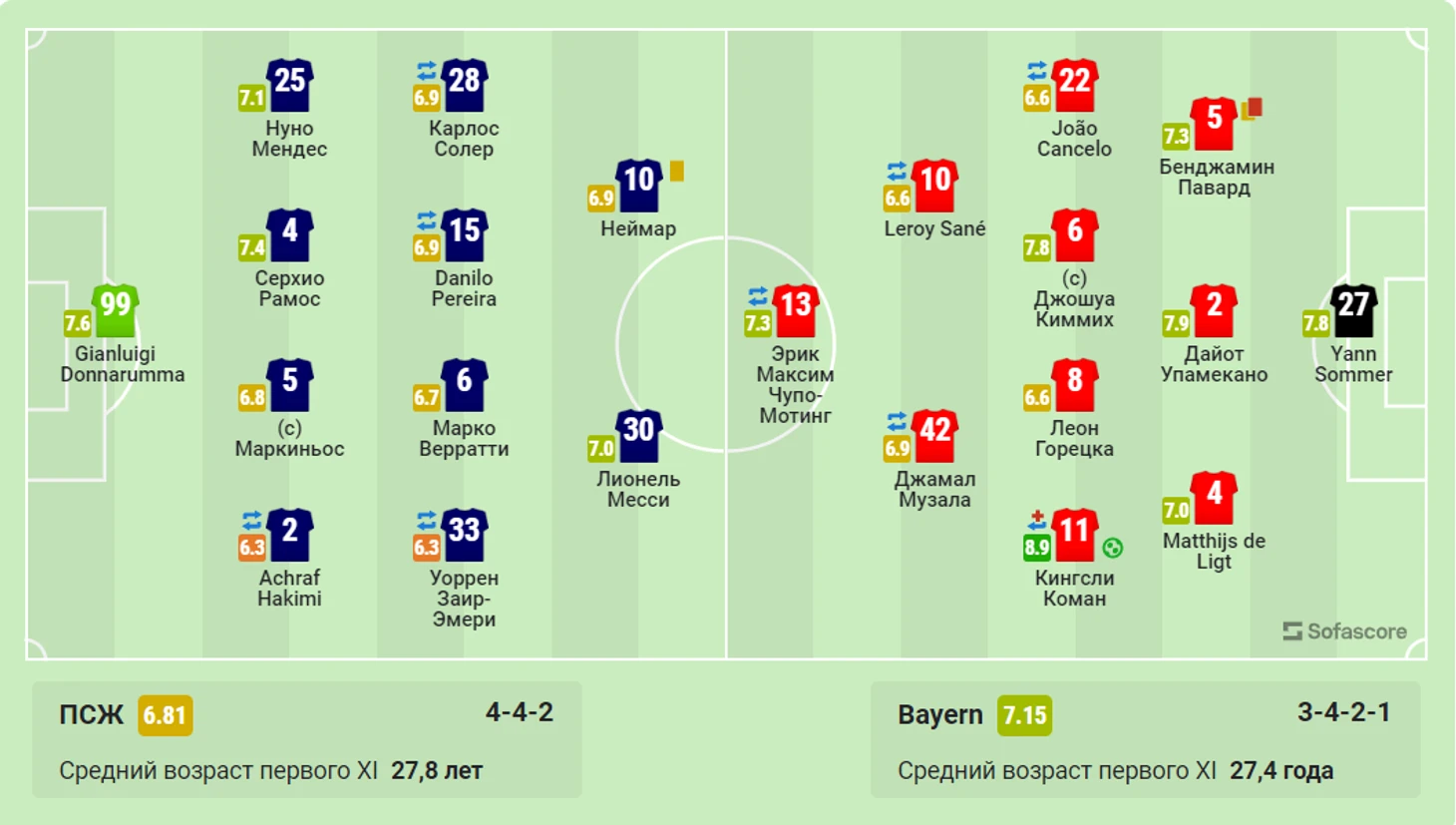1) Джанлуиджи Доннарума 7,5 Кингсли Коман 8,95