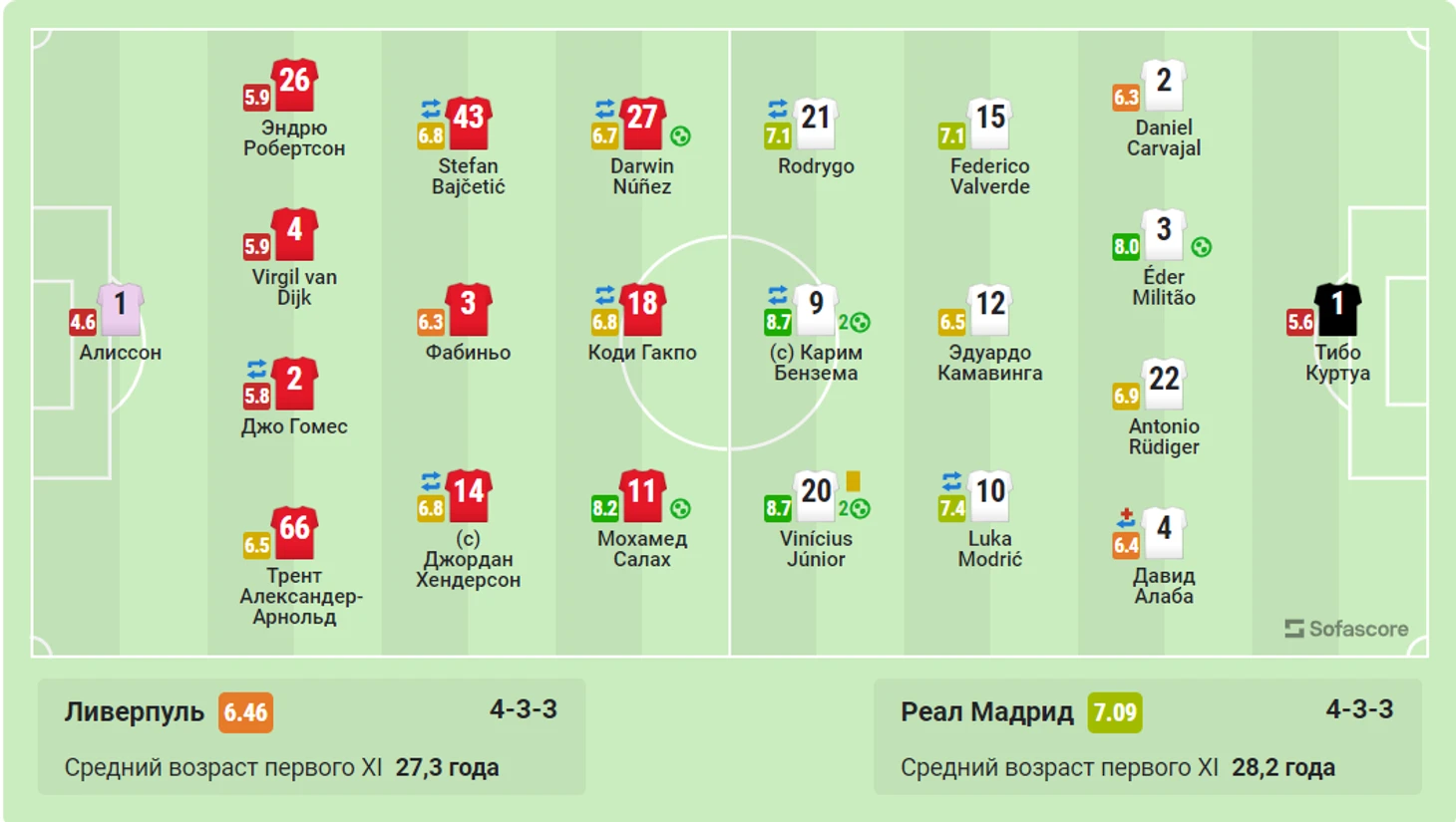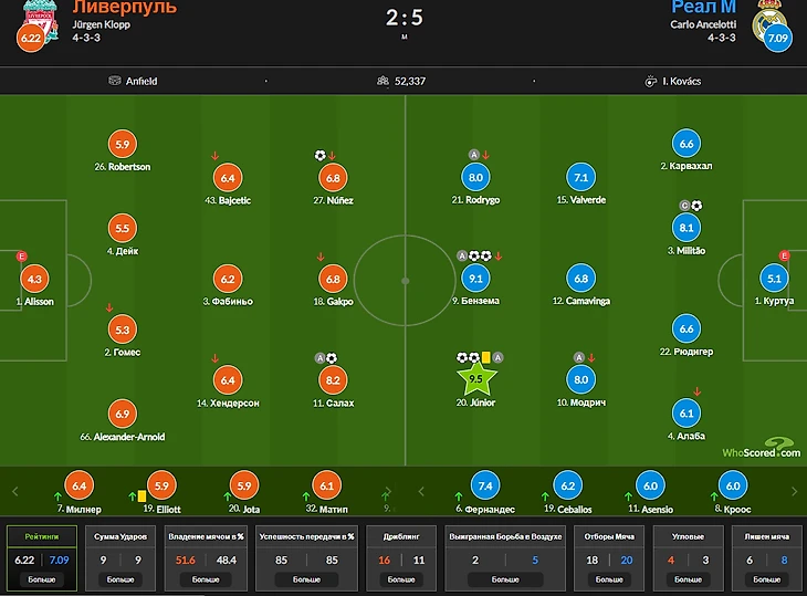 1) Мохамед Салах 8,2 Винисиус 9,1