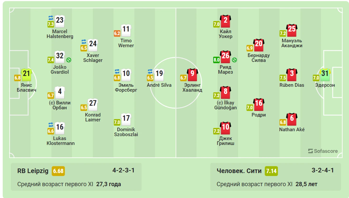 2) Гвардиол 7,25 Рубен Диас 7,15