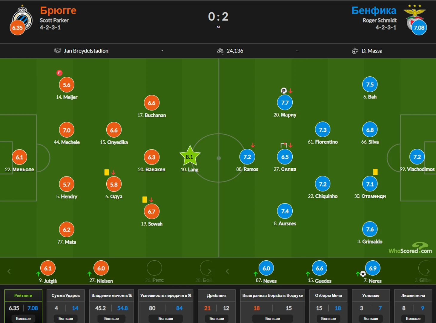 1) Ноа Ланг 8 Жоау Марио 7,7