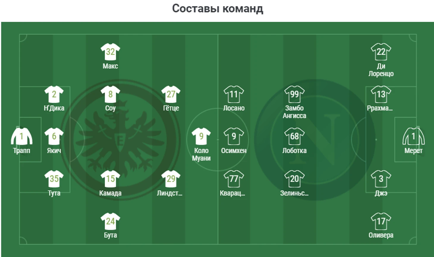 🟥 «Айнтрахт» 0 : 2 «Наполи»