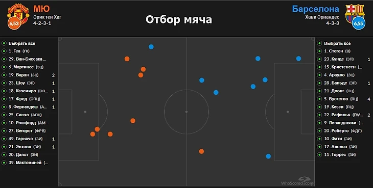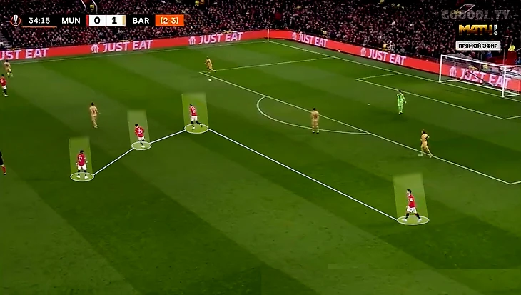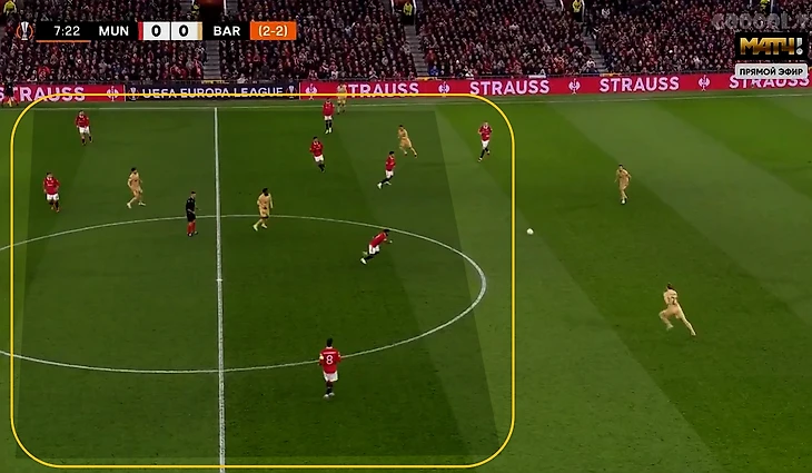 Прессинг Барселоны провалился, у МЮ хороший шанс забить гол.