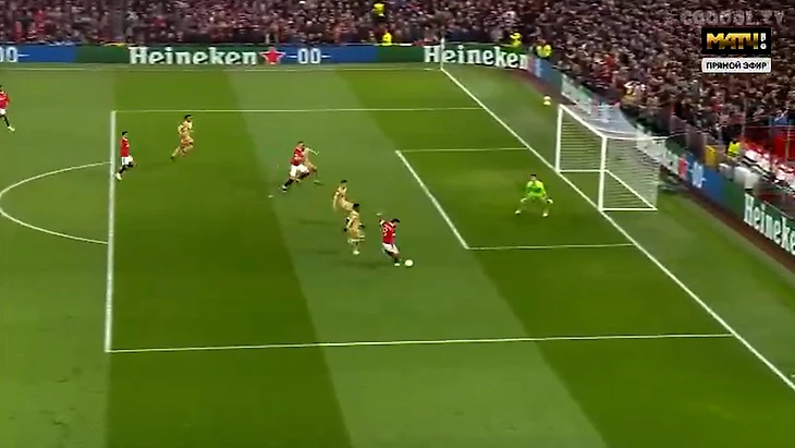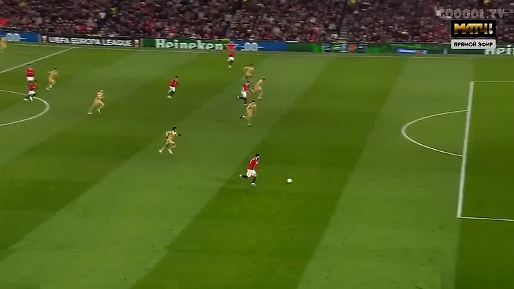 Кессье перед своей штрафной начал что-то выдумывать вместо простого выноса. Санчо подхватил сферу, отыграл на Бруну Фернандеша к центру, а тот выложил мяч на дугу на рывок Фреду.