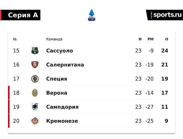 Сезон-2022/23 получается для «Сампдории» близким к провальному: команда идет на 19-м месте, ниже лишь совсем бедовый «Кремонезе». Отставание от спасительного места – уже восемь очков.