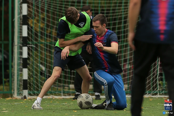 А это уже что-то из регби. Чаще всего отнять у Мансура Мухторова мяч или просто выдавить его подальше от чужих ворот можно только вот такими приемчиками, как демонстрирует игрок «Nordwind».
