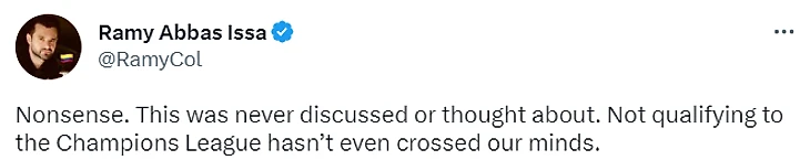 «Нонсенс. Такое никогда не обсуждалось и об этом даже не думали. Нам даже в голову не приходило, что мы не попадем в Лигу чемпионов».