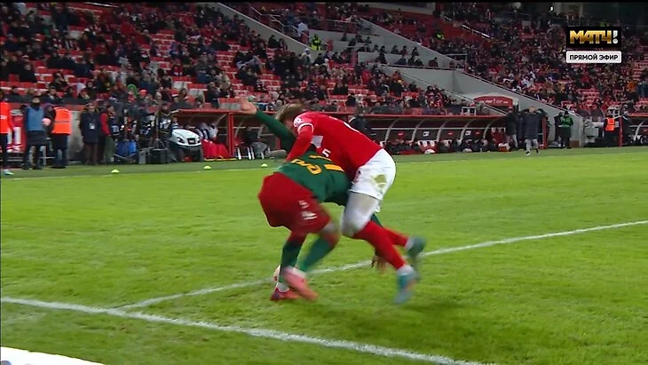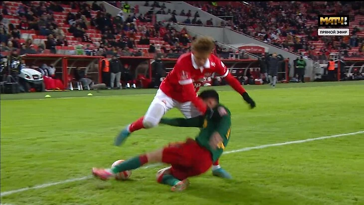 «Спартак» атаковал, но Тикнизян был первым на мяче после длинного паса Никиты Чернова. Его преследовал Михаил Игнатов.