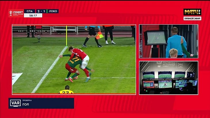 Дальше он отпасовал на Зобнина, Роман сделал счет 2:1. Игроки «Локомотива» спорили, а главный судья Сергей Иванов пошел пересматривать эпизод.