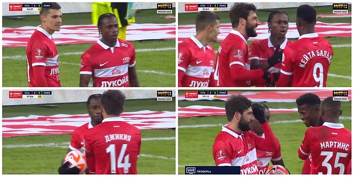 Пока игроки «Локо» ругались, Промес не отдавал мяч – больше было похоже на шуточный спор, но пробить наверняка хотел Кейта Бальде. В итоге на третий удар все же пошел Квинси.