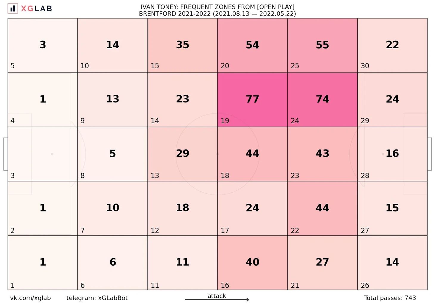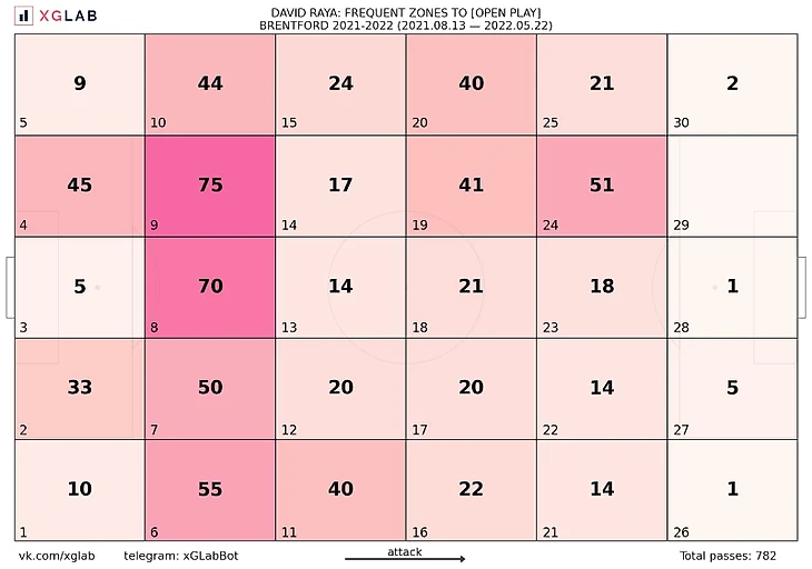 Картинка показывает, в какие зоны игрок делает передачи. Источник: телеграм-бот xGLabBot