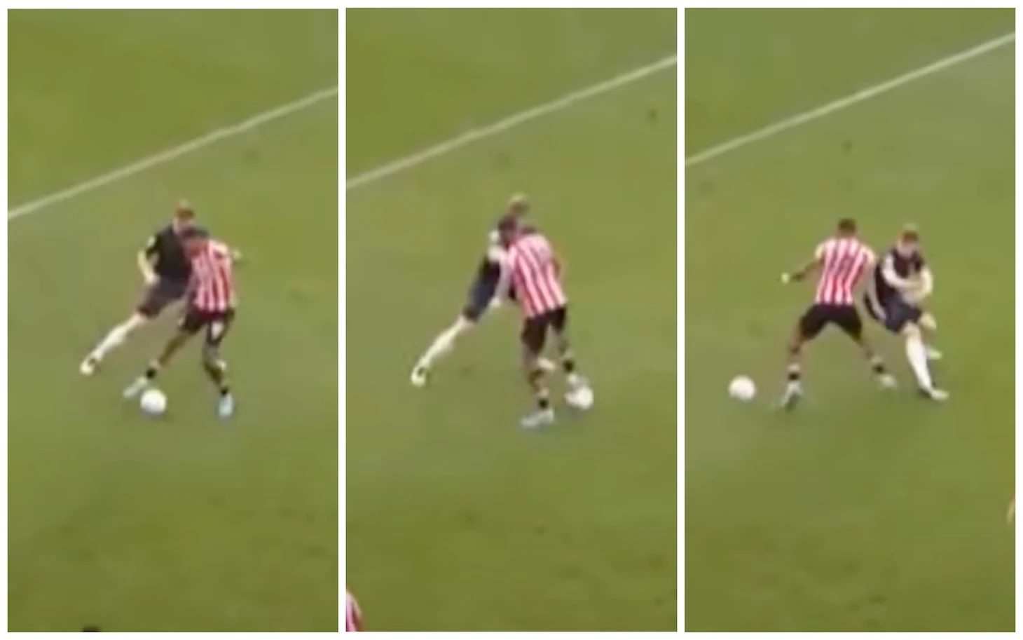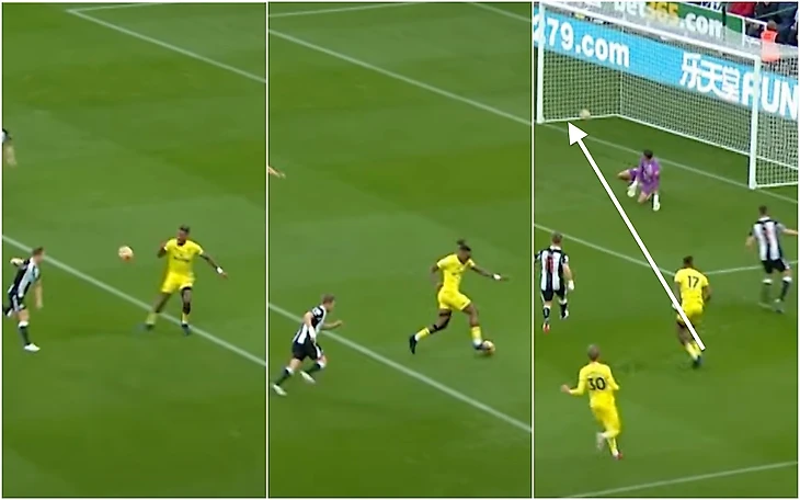 Обработал мяч разворотом, не отрывая его от ноги, исполнил ла-крокету и ушел от лесоруба из «Бернли».