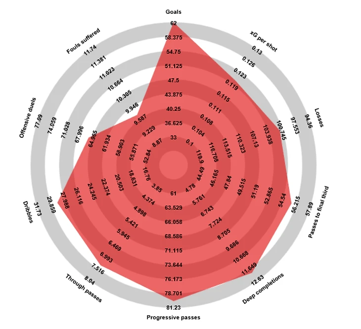 Завершение – то, ради чего мы здесь собрались. Айвен взобрался на третью строчку лучших бомбардиров Премьер-лиги в сезоне-2022/23, играя в команде из боттом-3 по владению.