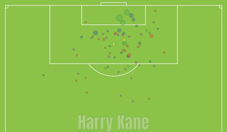 • У Айвена достаточно много больших кружочков в более дальних позициях (5-10 метров от ворот) и почти нет ударов прямо у ворот, то есть он находит опасные моменты в изначально более сложных зонах, где рядом больше игроков защиты;