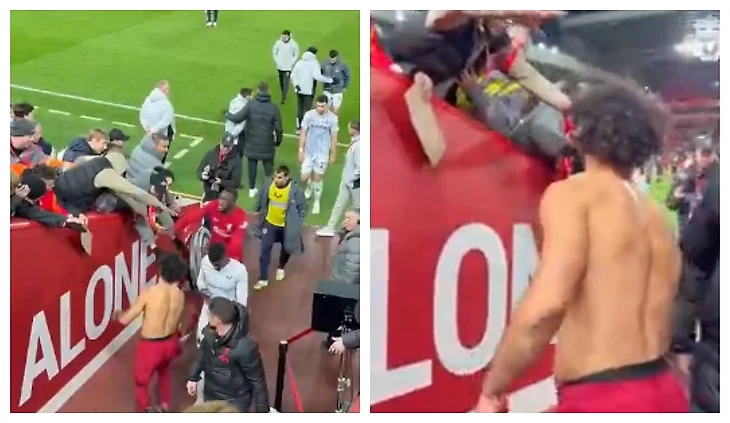 Салах хотел подарить футболку болельщику, но Конате его опередил: после победы над «волками» на «Энфилде» волшебная атмосфера❤️❤️❤️