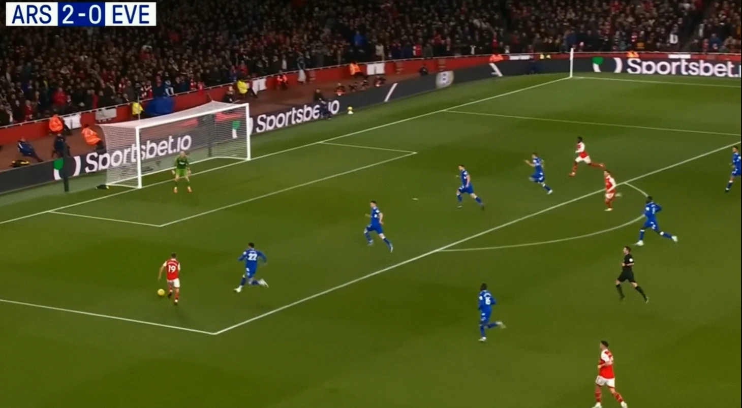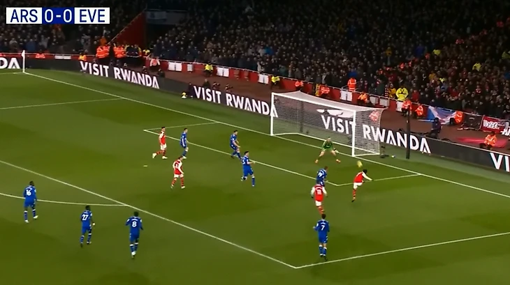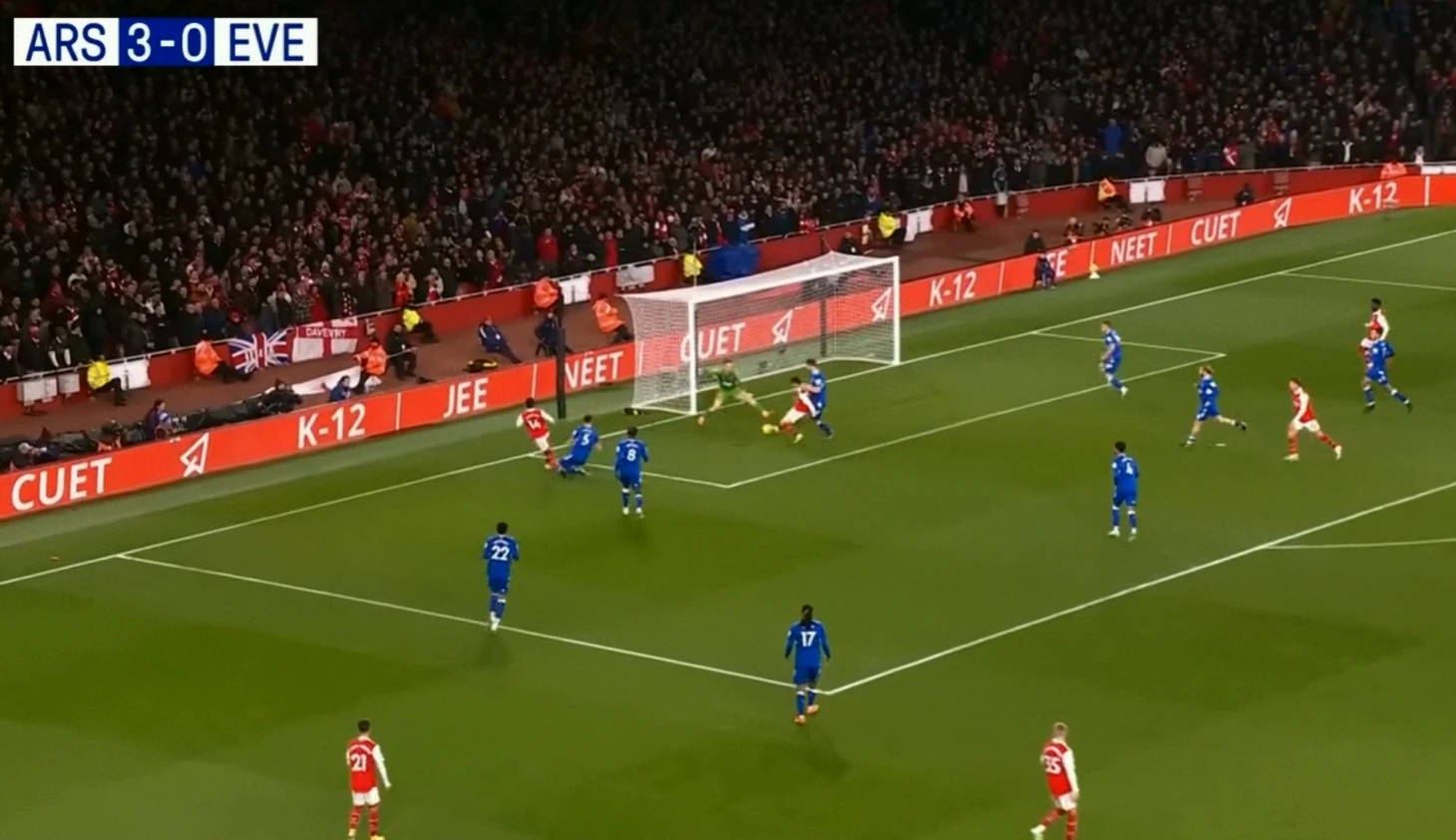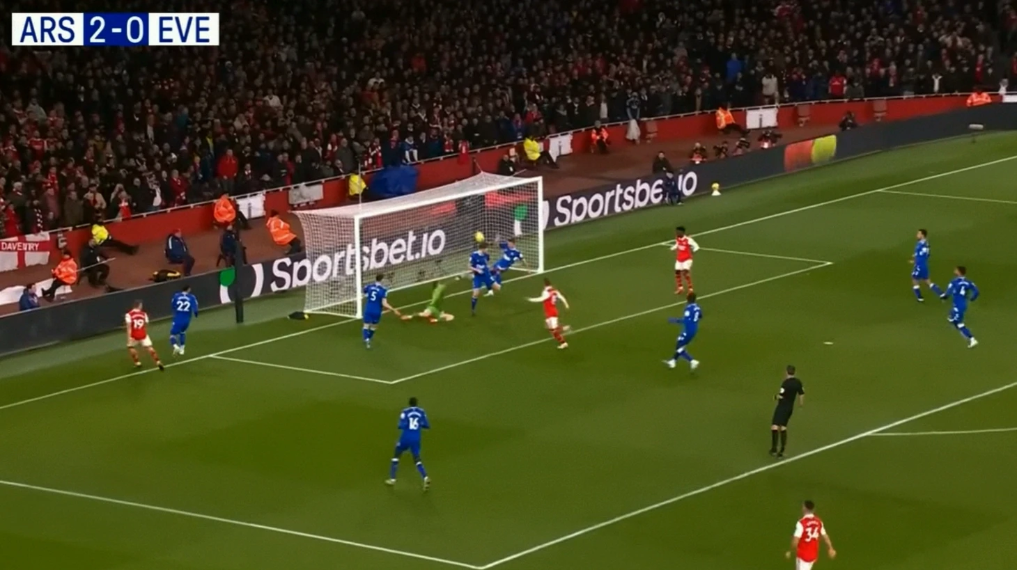 Это уже белочка или писец...Разгром! Игра сделана! Мартинелли принял мяч на чужой половине возле центральной линии и сыграл левее на Джаку. Чуть не в темп вышло, но швейцарец сферу догнал и отпасовал на фланг на Троссара. Леандро пробежал по краю и прострелил затем в центр штрафной, откуда Эдегор в касание послал снаряд в сетку мимо Пикфорда! Кто-то из защитников пытался отразить удар на "ленточке", но мяч лишь чуть изменил направление после рикошета, влетев под самую перекладину ворот Пикфорда.