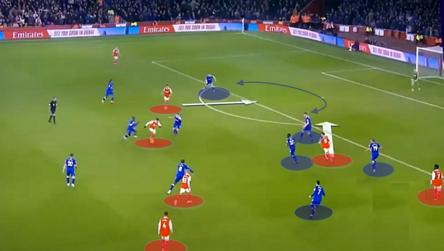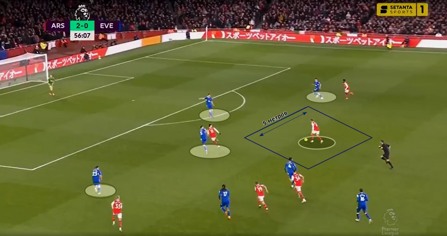 Уайт с правого края покатил мяч в ближний полуфланг на Зинченко, который ситуативно оказался не на своем фланге и даже не в центре.