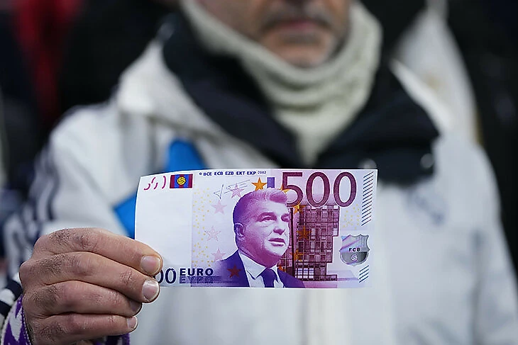 Болельщики «Реала» же подготовились к теплой встрече заклятого соперника. Распечатали портрет Лапорты на 500-евровых купюрах и разбрасывали их вокруг стадиона и внутри арены. Акция посвящена скандалу, в который угодила «Барса»: клуб долго платил миллионы евро второму человеку в испанском судействе Энрикесу Негрейре.