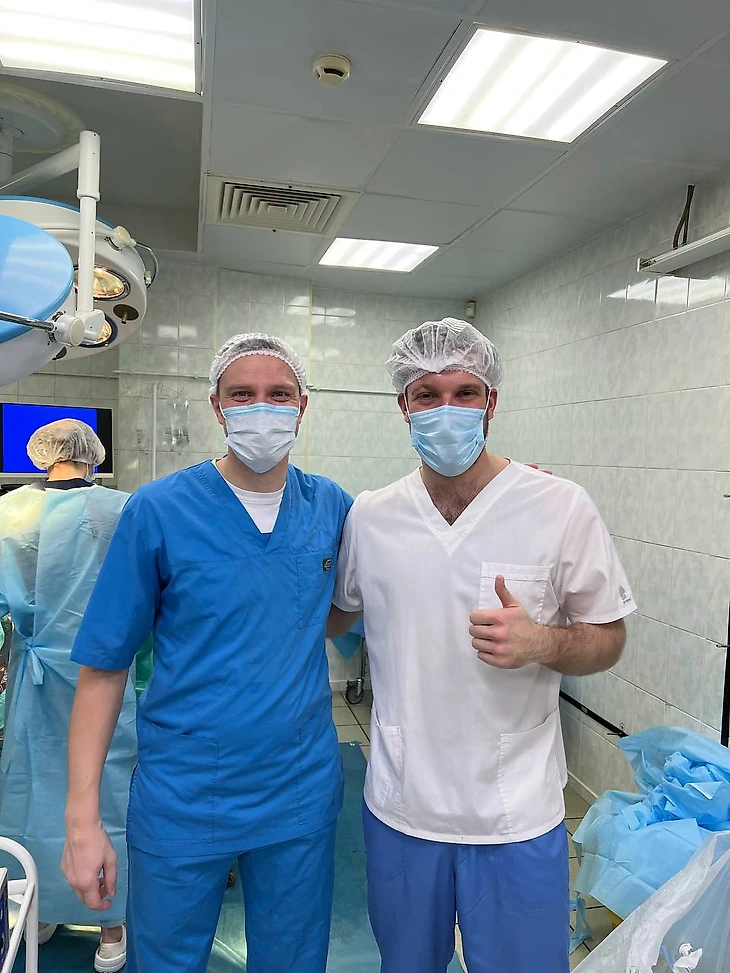 Естественно, когда ты работаешь с таким специалистом, конечно, многому можешь научиться, но тут скорее часть моих обязанностей — на мой взгляд, я, как реабилитолог, должен присутствовать на операциях своих пациентов. Это абсолютно нормальная практика, не нужно стесняться. Большинство хирургов вас поймет и спокойно пустит. А если откажется, то тут неплохо бы узнать почему. Это история не про какой-то контроль, а про понимание того, как выполнялась операция, в каком состоянии сустав. Это очень помогает в работе.