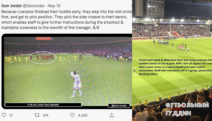 Перед каждым важным матчем вратарь имеет определённую базу о бьющем, так и игроки имеют данные о кипере. Однако, не так все просто! В прошлом сезоне «Ливерпуль» применил гениальный ход: в том же финале кубка Англии 2021-22 «красные» выбирают сторону, ближайшую к их скамейке запасных, что позволяет персоналу давать дальнейшие инструкции во время серии пенальти.