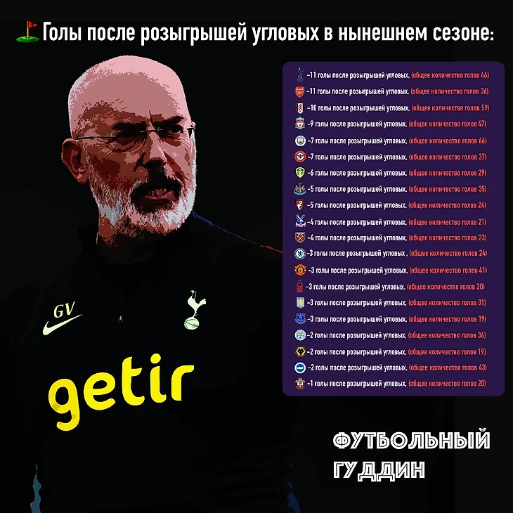Николас Джовер («Арсенал») и Джанни Вио («Тоттенхэм») - мастодонты ремесла угловых. Именно с их подачи строится огромный тактический шлейф на стандартах лондонских клубов. И как показывает практика, важность розыгрышей угловых является возрастающей - в прошлом сезоне почти 14% голов Премьер-лиги были связаны с угловыми, на 2% выше, чем в 21-22. В нынешнем - почти 15% (на текущий момент).