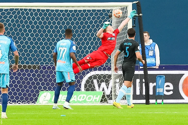 Установки тренера нижегородцев в теории были очень грамотны и понятны. В воротах, понимая, что будет много ударов, выходит более прыгучий Гойло. Нигматулин больше силен в тактических играх. В обороне появляется Гоцук, линия защиты отодвигается к своим воротам. Что тоже объяснимо. Невозможно против «Зенита» сыграть высоко, закидают за спину и не посмотрят. Отчасти такой план сработал. Хозяевам приходилось замедлять скорость атаки и переходить в позиционное нападение, где у защиты «Пари НН» появлялся шанс. Навесы снимал Гоцук, а на ногах Каккоев и Масоэро могли отобрать мяч. «Зениту» приходилось наращивать скорость передач и мгновенно меняться позициями, чтобы оборона нижегородцев путалась при передаче игроков для опеки. Владение мячом составило чудовищные 73%. Многое у них получалось и часто атаки доходили до удара, но где успевают накрыть, перехватить, где удар заблокируют или погасят скорость полета, но чаще выручал вратарь. В целом, справлялись. Не справились индивидуально с Малкомом. Майга позволил себя обвести и Михайлову ничего не оставалось, как сфолить перед собственной штрафной. Мяч летит точно в «паутинку»! 1:0.