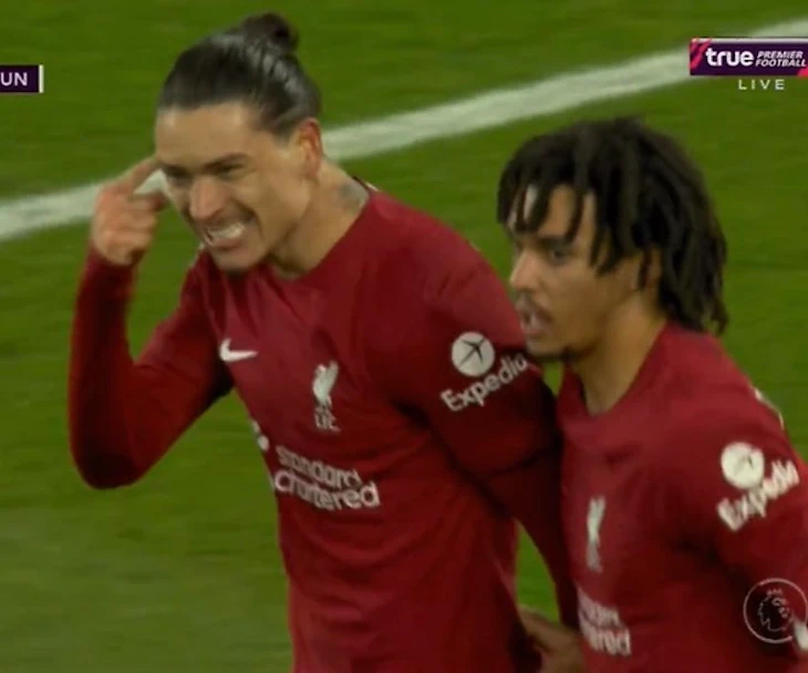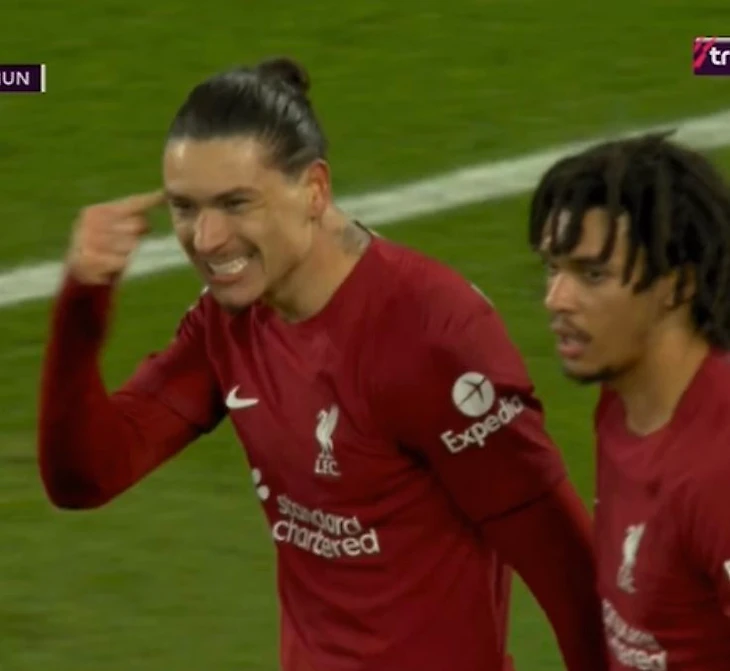 Дарвин Нуньес оформил дубль, и свой второй гол он отпраздновал, скопировав Маркуса Рэшфорда, который в этот момент грустил на другой половине поля.
