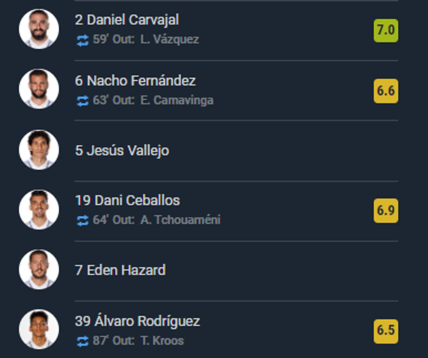 SofaScore поставил 8,2 Федерико Вальверде. 8,1 заслужил Тибо Куртуа.
