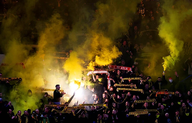 Немецкие фанаты обожают пиротехнику. Их не пугают ни досмотры, ни большие штрафы от немецкого футбольного союза. Например, в конце прошлого сезона «Боруссию» штрафовали за файеры и дымовые шашки в матче Бундеслиги на 42 тысячи евро.