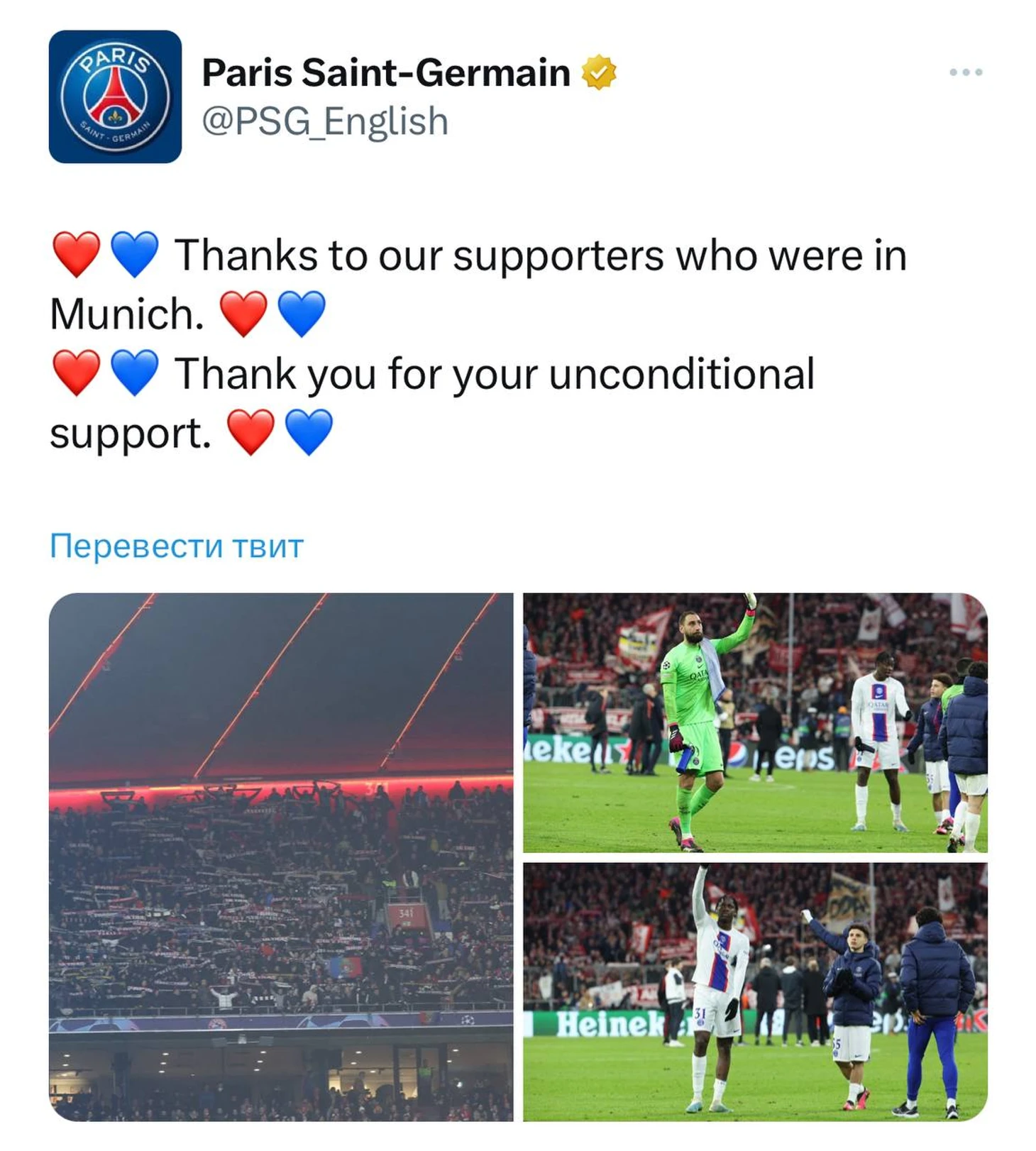 Браво, болельщики «ПСЖ»💙❤️💙Оставались на трибунах даже после финального свистка и заслужили благодарность от клуба