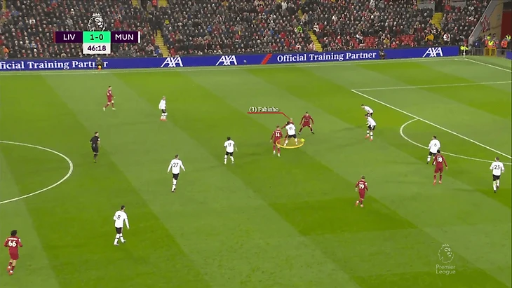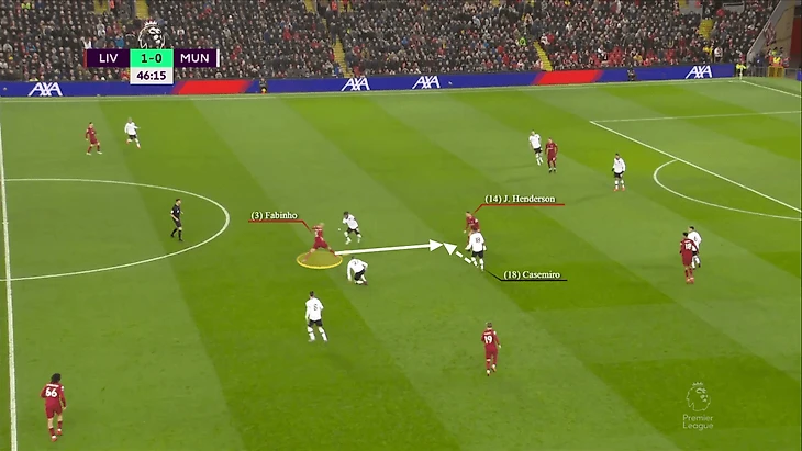 Фабиньо продолжал прессинговать, когда «Ливерпуль» собирался провести контратаку, но он продемонстрировал свою компетентность, быстро вернувшись на позицию, вступив в единоборство с Вегхорстом и помогая вернуть владение мячом.