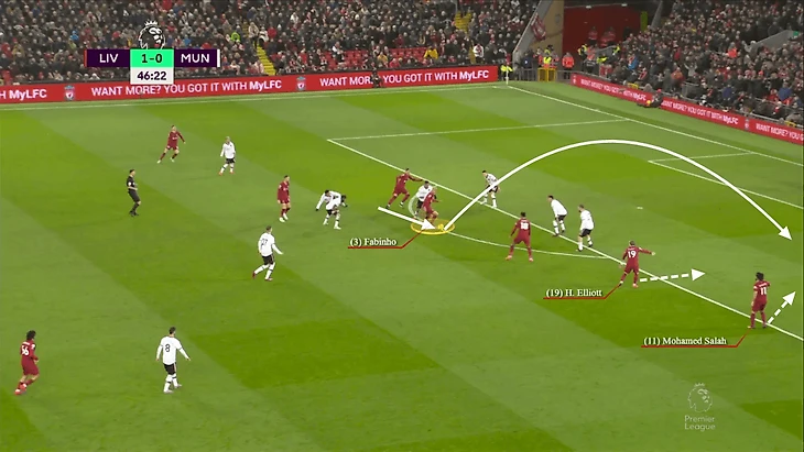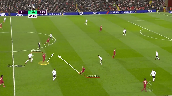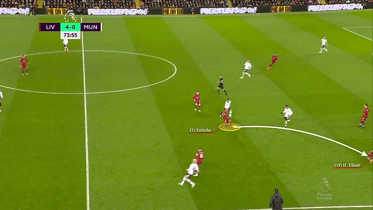 После того, как Эллиотт перехватил мяч, он попытался передать его Фабиньо.