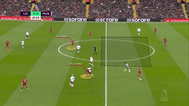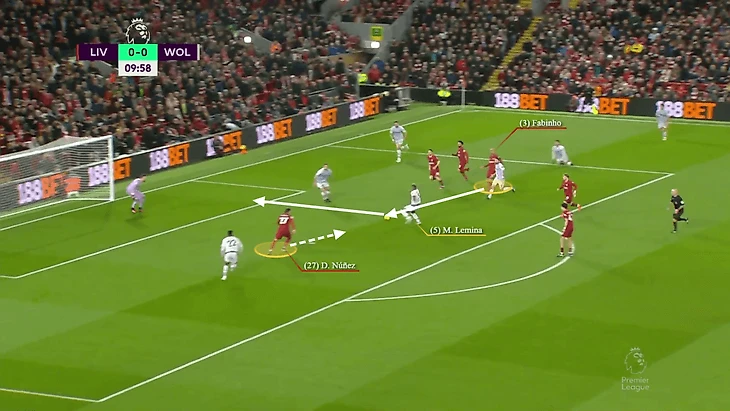Первоначально он был частью пасового треугольника с Салахом и Трентом Александер-Арнолдом, чтобы освободить место для правого защитника, который сделал убийственный пас на Нуньеса при первом голе.