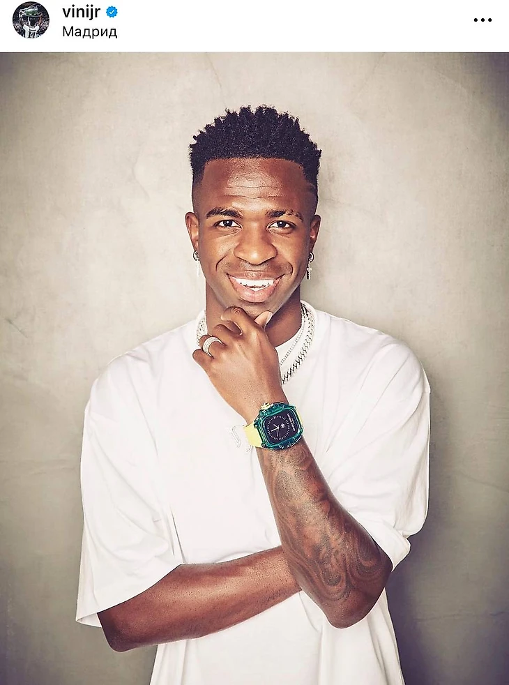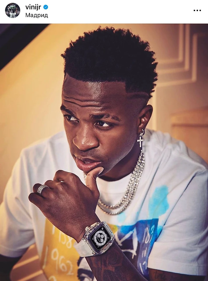 Бразилец постепенно становится главной звездой Мадрида, но Испанией его популярность не ограничивается. В Японии просто обожают Вини – очередной рекламный пост местной компании, изготавливавшей уникальные Apple Watch, – лишнее тому подтверждение.