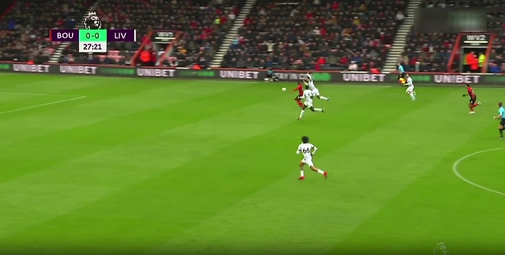 Сначала Вирджил отчаянно пытался догнать полузащитника «Борнмута», попутно споткнувшись, а после он просто встал и стал наблюдать, как мяч залетает в ворота мерсисайдцев.