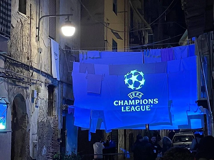 В Неаполе устроили фан-зону в самом криминальном квартале города. Трансляция ЛЧ велась на развешанное белье🥼🩳👚