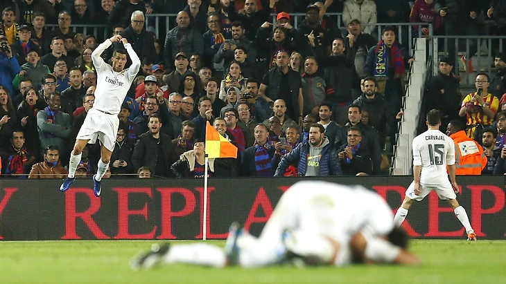 Безумный матч в котором было все - стычки, удаление, победный гол на последней минуте. Первым отметился Реал усилиями Каземиро, но Месси сразу ответил сольным проходом и сравнял счет. Далее была традиционная красная Серхио Рамоса и дальний удар в сетку ворот от Ивана Ракитича. Хамес Родригес под конец сравнивает счет, кажется что все были согласны на ничейный исход, кроме будущего аргентинского чемпиона мира - Лео Месси, который прямо перед свистком отправляет мяч в сетку ворот Кейлора Наваса и гордо демонстрирует свое имя недовольной публике.