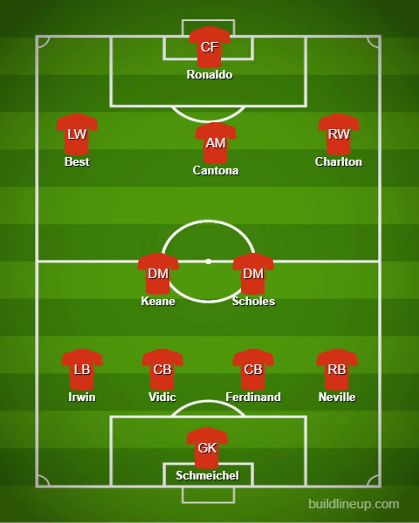 В состав попали такие легенды, как Эрик Кантона, Джордж Бест, Неманья Видич и другие, но, как ни странно, лучшему бомбардиру клуба Уэйну Руни места не нашлось.