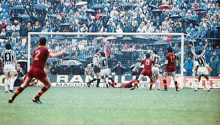 Итак, до конца игры оставалось 18 минут, счет пока не был открыт, но Рома играла в большинстве. Бруно Конти отдал дальнюю передачу посредством навеса в штрафную Юве, Роберто Пруццо в высоком прыжке поборолся на втором этаже и скинул мяч на Маурицио Туроне, тот опередил Чезаре Пранделли в борьбе за мяч и головой забил единственный в матче гол в ворота Дино Дзоффа.