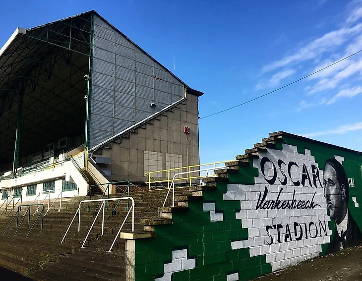 Он был построен в 1923 году и назван в честь бывшего президента клуба Оскара Ван Кесбека, фламандского либерального политика. При входе даже красуется граффити с изображением этого колоритного дяди.