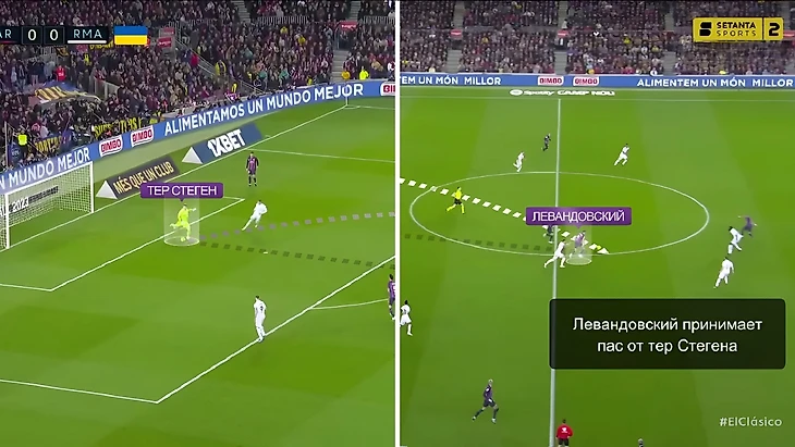 Прессинг «Мадрида» не позволил гостям через него получать моменты у ворот «Барселоны» на постоянной основе, однако «каталонцам» чаще приходилось упрощать игру. Когда мяч вводит в игру такой великолепный голкипер, как тер Стеген, это всё равно может быть эффективным способом преодоления прессинга.