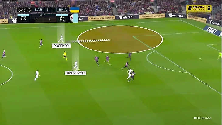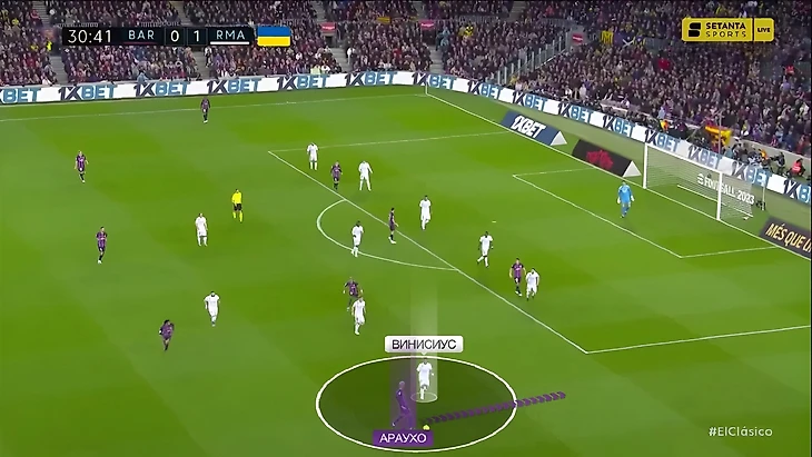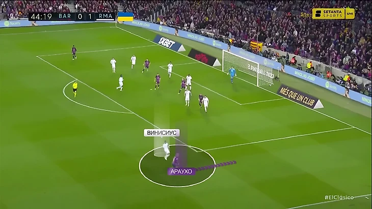 Ещё одна особенность дуэли Винисиуса против Араухо в этом Класико – смена ролей, в которой бразилец оборонялся против уругвайца. Во второй половине первого тайма Рональд стал чаще ходить в атаку. Возможно это стало следствием более высокой позиции Винисиуса, из-за которой он не всегда успевал садиться в оборону.