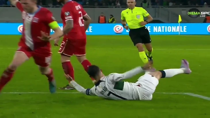 Криштиану Роналду не только сделал дубль в матче с Люксембургом, но и получил желтую карточку за симуляцию.
