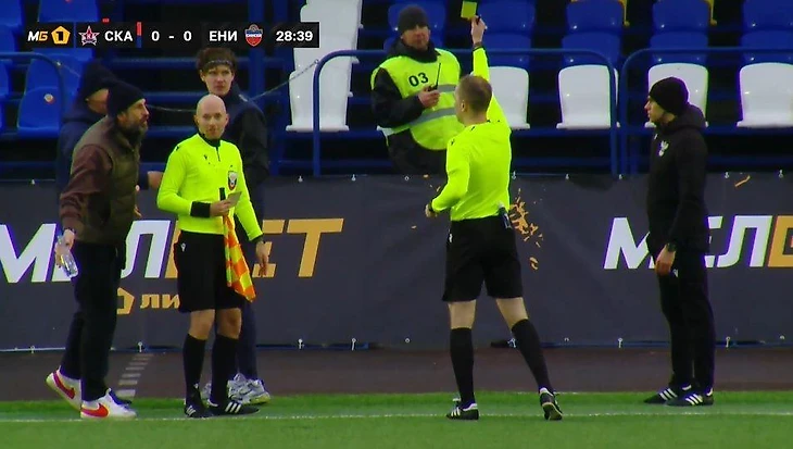 На 29-й минуте матча «СКА Хабаровска» и «Енисея» за неспортивное поведение желтую карточку получил защитник хабаровского клуба Томас Рукас. Важный нюанс: в это время Рукас находился на скамейке запасных – пропускал матч из-за травмы.