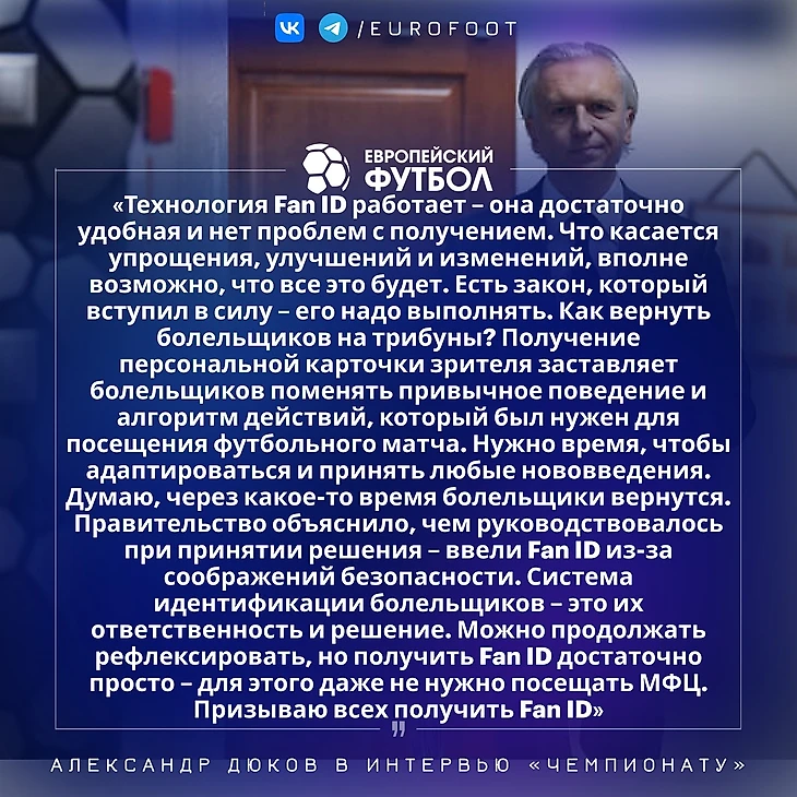 Эрик Бикфалви («Урал»): Я знаю ситуацию и в курсе, что болельщики отказываются оформлять Fan ID. Это их выбор, который я уважаю. Но, возможно, ситуация изменится – нам нужны болельщики».