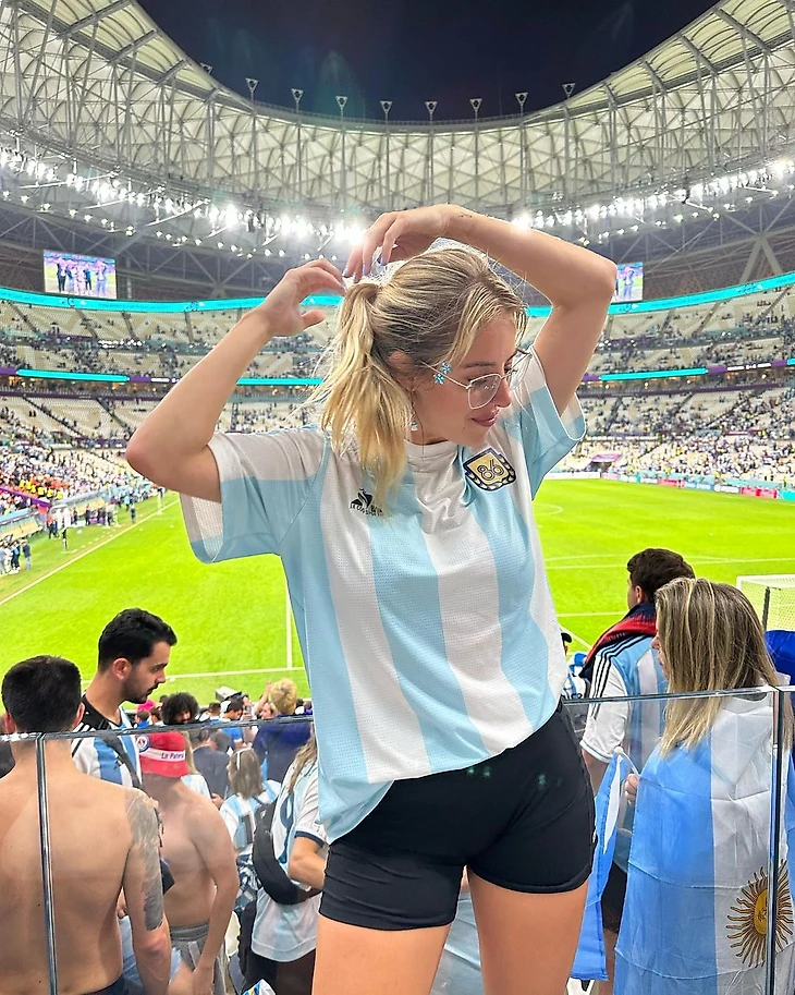 Кажется, у сборной Аргентины на ЧМ-2022 был самый мощный десант из журналистов женского пола. Мы нашли еще одну девушку, которая радовалась победе команды Месси и Скалони в Катаре.