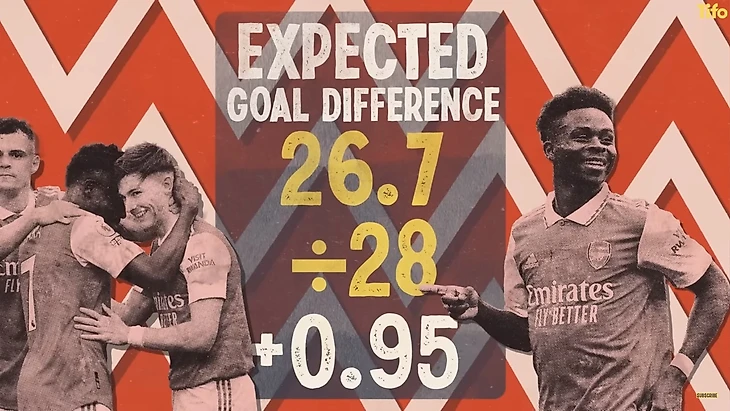 Если взять показатель «Арсенала» по xG ожидаемых голов и вычесть из него показатель хG пропущенных - получится ожидаемая разница мячей за период сезона, который завершился победой 4:1 над «Кристал Пэлас». Ожидаемая разница мячей у «Арсенала» составляет 26,7/28 за игру, итого получается 0,95 - этот показатель отражает ожидание того, что в среднем, они имеют совокупность моментов, содержащих в потенциале на один гол больше, чем у соперников.