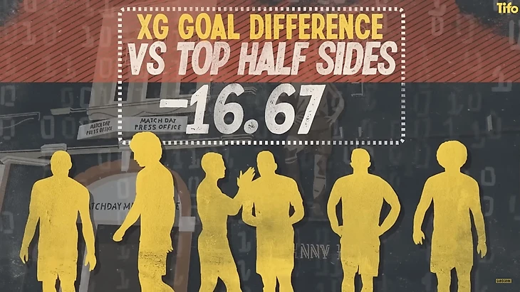 В таких ситуациях всегда стоит оценить контекст, чтобы понять, откуда взялись эти цифры. Если проделать это с «Фулхэмом», то становится очевидным, что большинство ожидаемых пропущенных голов приходятся на матчи против команд из верхней половины чемпионата. До сих пор, в этом сезоне, их ожидаемая разница пропущенных мячей против топ-команд составляет: 16,67, или их ожидаемая разница забитых и пропущенных мячей против остальных команд составляет: + 4,51. Теперь ясно, что значительную роль в их ожидаемом показателе по пропущенным голам играют матчи против команд из верхней половины таблицы.