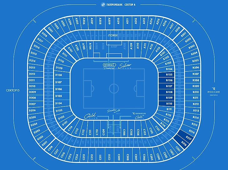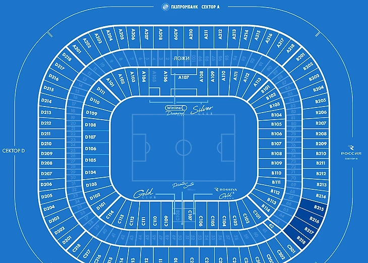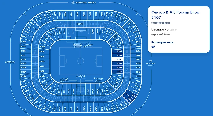 Забирать бесплатный билет я не стал (все-таки мне его никто не предлагал) и заплатил 372 рубля за место в секторе B107. Судя по билетному сервису, там было немало мест по тем самым промокодам. Я подобрал кресло рядом с бесплатными и находился в окружении еще пяти таких же секторов.