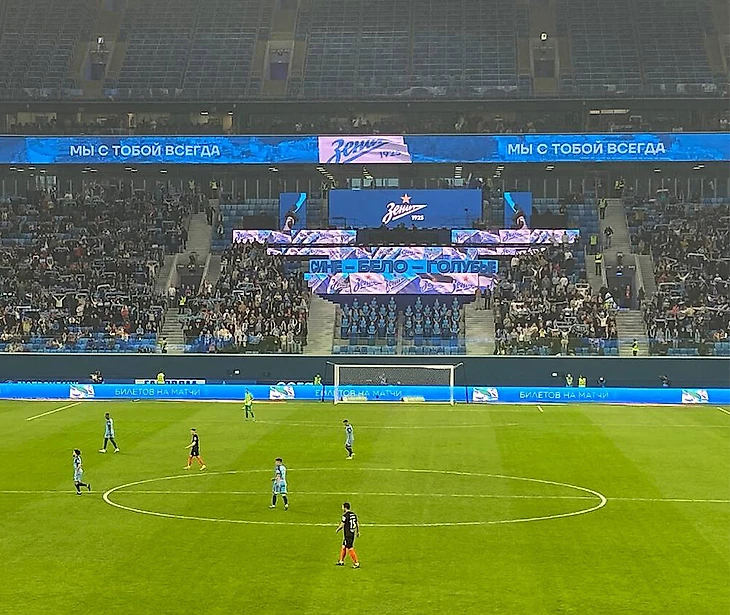 Ситуация – странная. «Зенит» все еще мастерски упаковывает матч: интересный «Фан Променад» (открыли фотозоны с профессиональным оборудованием и пространство киберспорта, провели выставку, которую создавали благотворительные фонды), достойный концерт, на высочайшем уровне заигрывания графикой, светом и звуком – все как во времена полных трибун, когда маркетинг примагничивал аудиторию и заставлял людей платить. Теперь же – бесплатные билеты, возможно, 900 рублей за кричалки и сектор со сценой, который не возвращает прежнюю атмосферу.