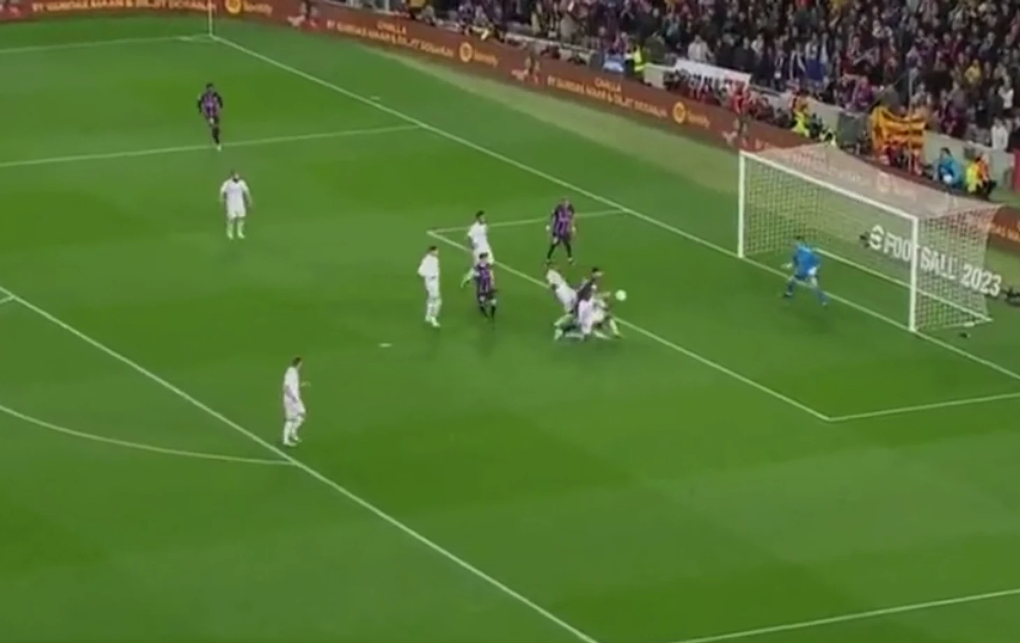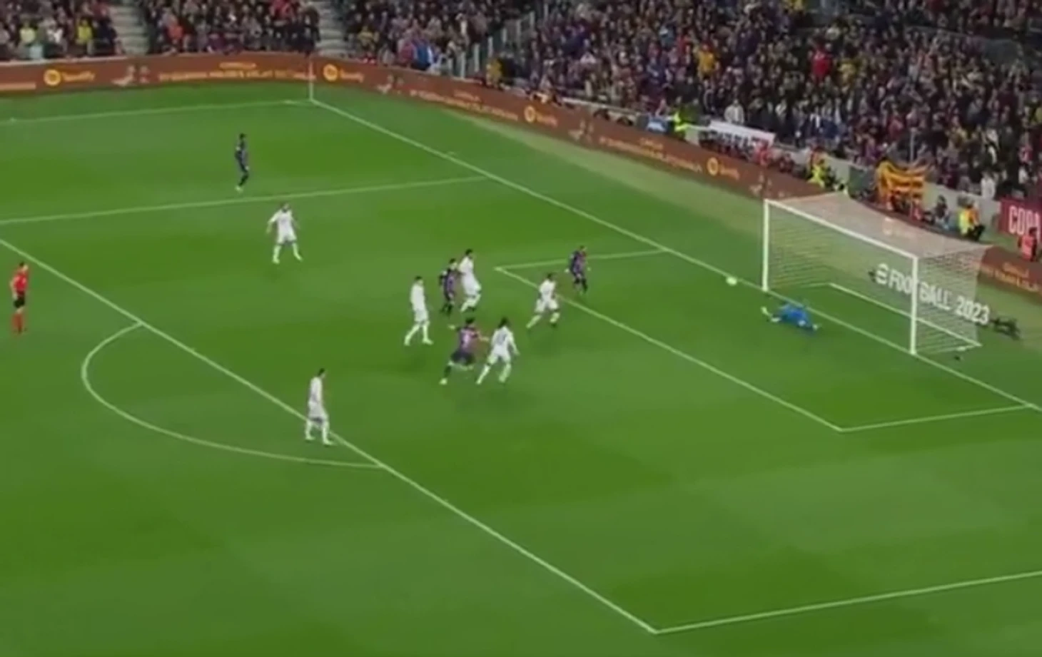 В первом тайме «Барселона» вероятно могла получить право на пенальти, если бы судья был более внимателен. Роберт Левандовски ворвался в штрафную и ударил по воротам. Куртуа парировал удар, однако поляк был первым на подборе.